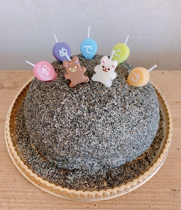きな粉おはぎケーキ4号サイズです。中には粒あんが入っています。 3~4人前 ¥1706.4(税込価格) ローソクのデザインが変わりますがご了承下さいませ。